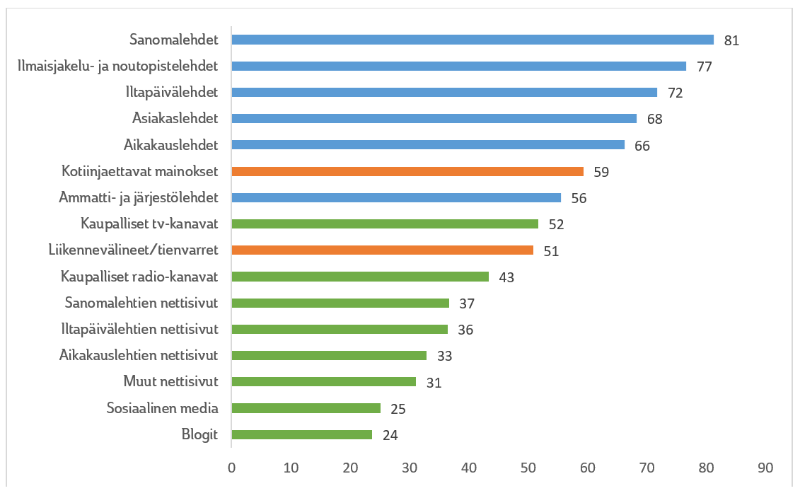 Aktiivi-ikäiset suomalaiset seuraavat lehtien sisältöä monipuolisesti kaikilla mahdollisilla välineillä Viimeisimmän KMT-tutkimuksen mukaan lehtien lukeminen monipuolistuu entisestään, painetun lehden säilyttäessä suosituimman asemansa. Lehtien seuraaminen eri välineissä 2011-2015, % vastaajista, koko väestö 12+ Lähde: KMT AL + total 2015 Suomalaisista erityisesti 18-44 -vuotiaat ovat omaksuneet viikoittaiseen mediakulutukseensa lehtien sisältöjen seuraamisessa kaikki mahdolliset Lue lisää